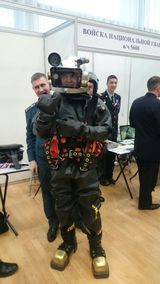 Также мы примерили бронезащиту полицейского и водолазный костюм.