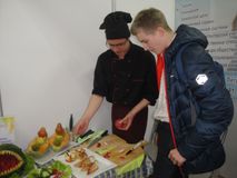 Студенты специальности «Технология продукции общественного питания» Асанов Андрей и Вадим Жуйков предложили всем желающим принять участие в мастер-классы «Карвинг- украшение стола», а студентки 3 курса специальности «Банковское дело» Иванова Ирина и Александрова Кристина - в мастер-классе «Определение подлинности банкнот».
