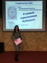 Группа, в которой работала Арина Качигина, разрабатывала тему «Студенчество 2030». Работать в группе, по словам Арины, было интересно, а защита проекта стала хорошим опытом публичного выступления пред участниками Республиканского форума и конкурсантами Чемпионата «Молодые профессионалы» (WorldSkills Russia).
