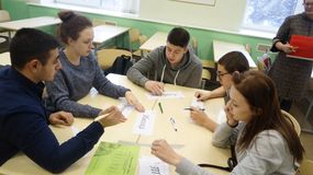 Петрозаводский кооперативный техникум представила команда студентов 1 курса группы 1В (Овакимян Ваге, Цулая Владимир, Елисеев Кирилл, Посадская Диана, Старокольцева Ольга), преподаватель Пожарищенская С.Ю. В процессе игры ребята продемонстрировали свои знания, умения и навыки по информатике, решали логические задачи.