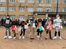 В рамках Всероссийского фестиваля #ВместеЯрче 26 октября прошел классный час «Экология и энергосбережение». Студенты провели время с интересом и пользой. Классный час состоял из двух частей. Первым этапом было задание придумать и сконструировать эко-костюм из вторсырья. Ребята совместно с кураторами воодушевленно принялись за работу. Но все оказалось не так просто. Для того, чтобы получить желаемый вспомогательный предмет – ножницы, клей или скотч – необходимо было «заплатить», дав правильный ответ на вопросы на экологическую тематику. Костюмы получились разные, но интересные и немного космические. Второй этап был и трудным, и легким одновременно: всем участникам классного часа необходимо было изобразить огромную лампочку – акция, посвященная энергосбережению.