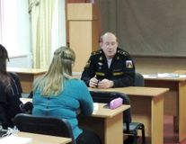 Перед обучающимися выступил капитан третьего ранга в/ч 81265 г. Североморска Данилевич Ярослав Сергеевич. В своем выступлении он рассказал юношам и девушкам о службе в армии Российской Федерации, делая акцент на то, что в армии служат как мужчины, так и женщины. Объяснил студентам, чем отличается служба в армии по призыву от службы по контракту, привел примеры из личного опыта работы в Вооруженных силах города Североморска. В ходе беседы ребята задавали вопросы, Ярослав Сергеевич на все вопросы дал подробные ответы. После выступления капитан третьего ранга указал адреса пунктов отбора на военную службу для обращения граждан по вопросам службы в армии.