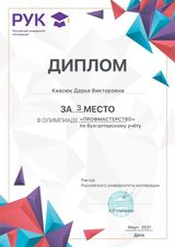 12 марта 2021 г. состоялась Онлайн - олимпиада по бухгалтерскому учету, организатором которой выступил Российский университет кооперации. В олимпиаде участвовали студенты СПО 3 курса. Задания олимпиады включали вопросы по основным понятиям бухгалтерского учета, строению бухгалтерского баланса, определению типов изменений в балансе под влиянием хозяйственных операций, а также по указанию корреспонденции счетов бухгалтерского учета по хозяйственным операциям.