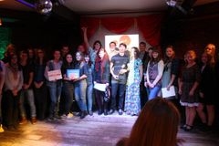 Закрытие фестиваля проходило в клубе-ресторане «Бегемот». Ведущие объявляли призовые видео… и нашего среди них не оказалось. Расстроенные, вышли мы из зала и пошли ближе к гардеробу. И вдруг из-за спины послышался голос ведущего: « …и приз зрительских симпатий достается… команде «Лидер»». Вышли на сцену, нам пожали руки, подарили сувениры от компании Ситилинк + 1 месяц бесплатного интернета. Завершилось все совместным фото.