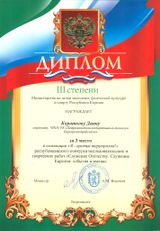 В результате работа Дианы вышла в очный этап (было отобрано 22 конкурсные работы из 70).