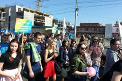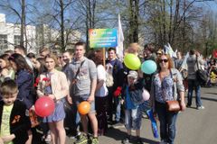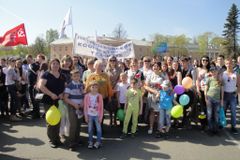 Флаги, баннеры, шары, цветы - наша колонна была яркой и праздничной. На площади Ленина, конечном пункте Марша памяти студенты поздравили ветеранов, возложили цветы к вечному огню.